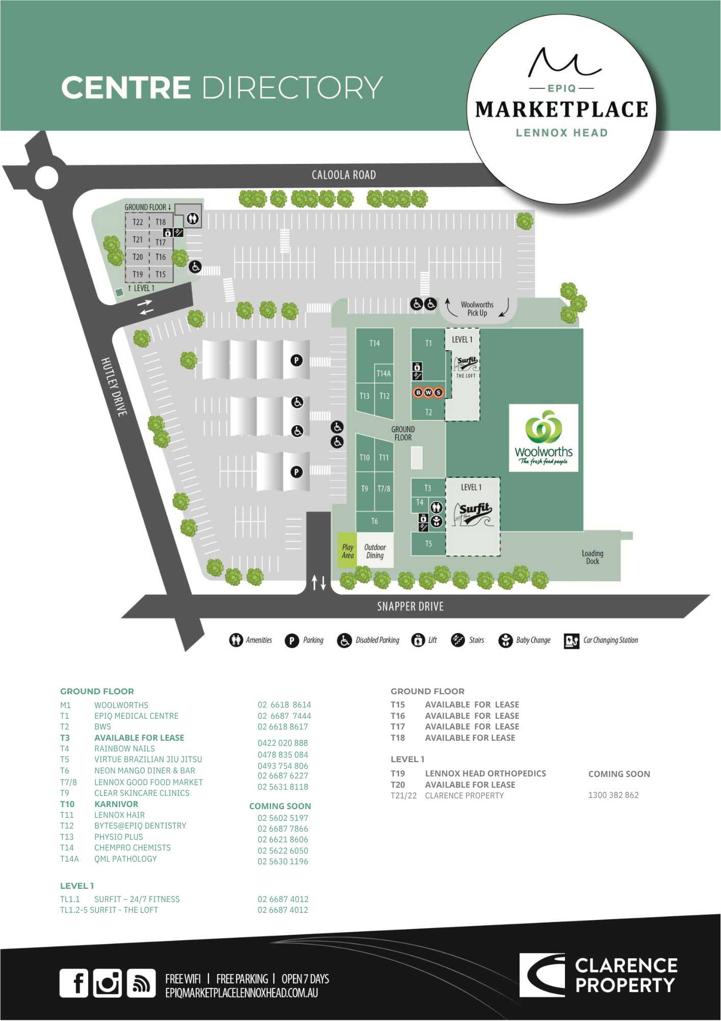 Epiq Marketplace is single level convenient shopping centre with the addition of a mezzanine floor with easy access to a gym and professional suites via an internal lift. This is designed to provide complete access in and around the centre.